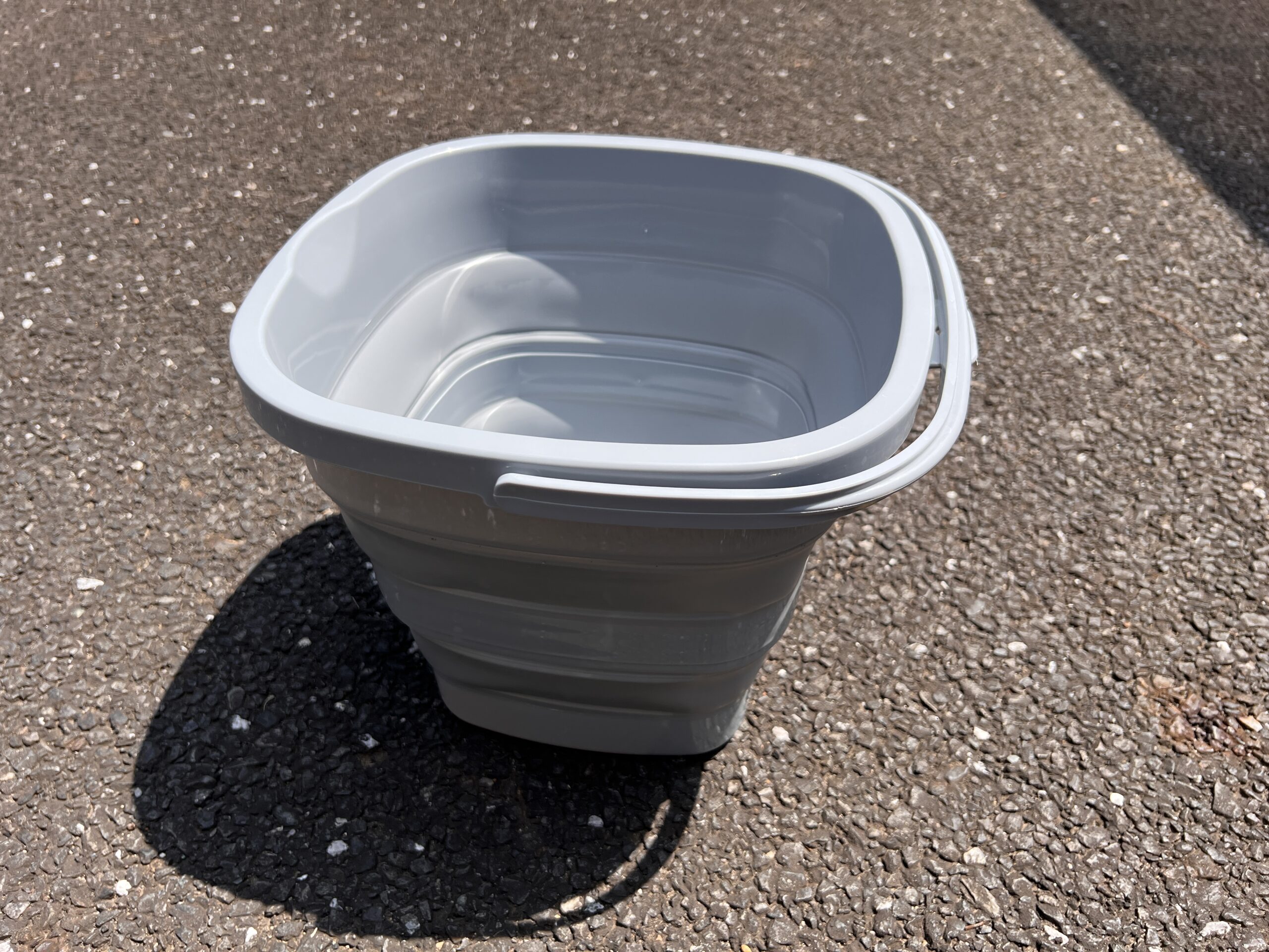 実際に私も過去に使っていた折りたたみバケツから水漏れしました。よく見るとシリコン部分に穴があいてしまっていました。